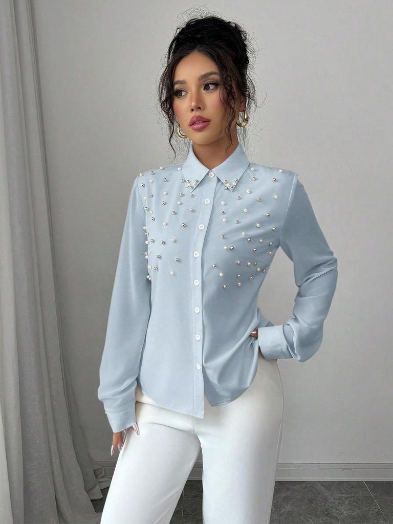 2026 Spring/Summer Elegant Solid Color Lapel Single-Breasted Shirt PJ0579