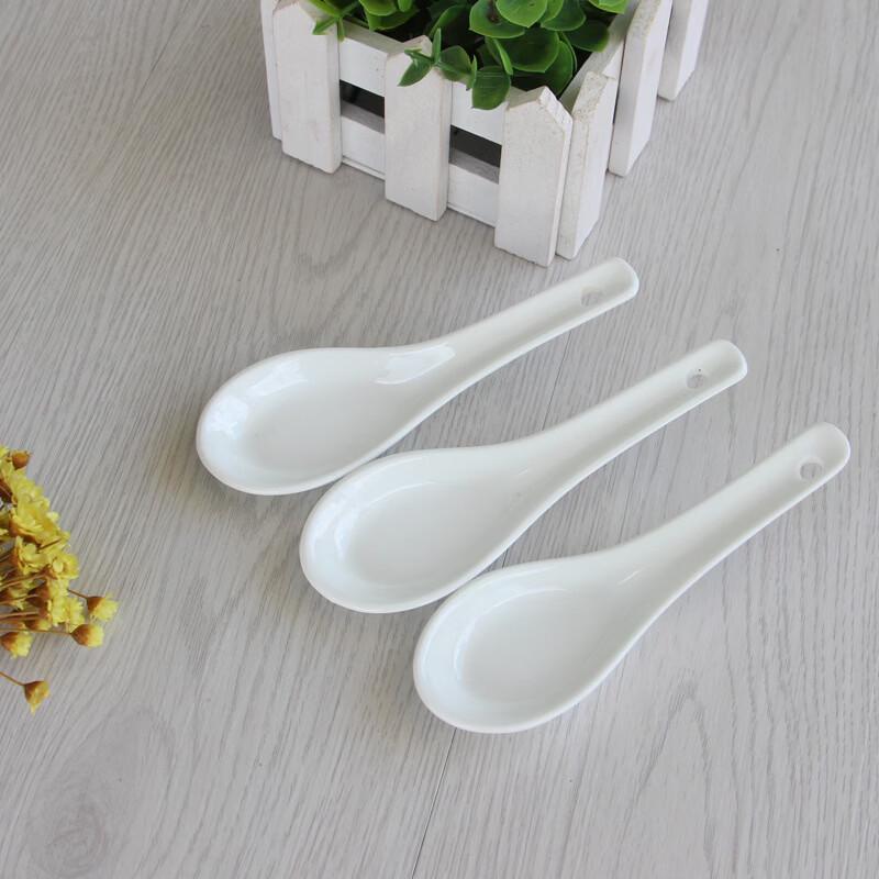 Pure White Ceramic Flat-Bottom Soup Spoons, Set of 10