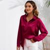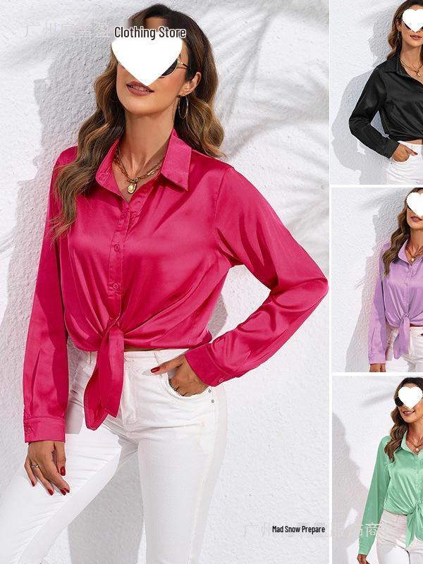 European & American Women's Long Sleeve Satin-Cotton Shirt - Solid Color, Spring & Autumn Bestseller