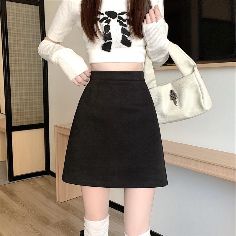 Melaleuca High-Waist Woolen A-Line Skirt: Slimming College Style for Autumn Winter 2025