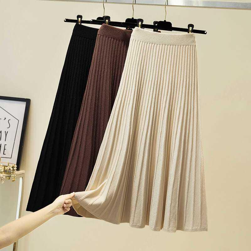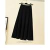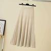 Women's High Waist Wool Knit A-Line Pleated Midi Skirt - Autumn/Winter Slimming Umbrella Hem