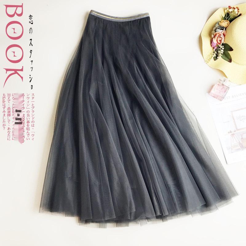 Korean Summer 2023 Elastic Waist A-Line Tulle Skirt for Women