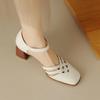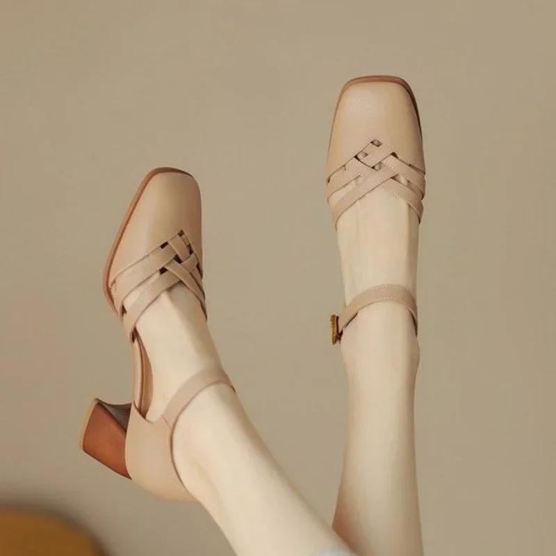 French Style Hollow Out Soft Leather High Heels Roman Head Women's Sandals Summer New Retro Rubber Bottom Square Toe Shoes