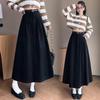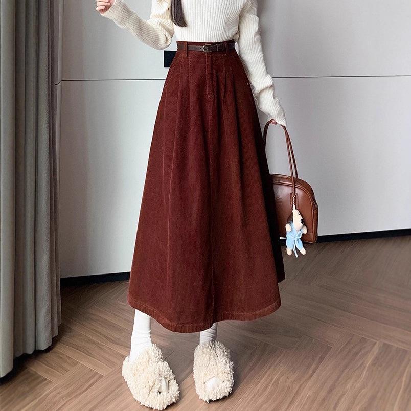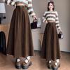 Women's High Waist Corduroy Midi Skirt - 2025 Autumn Winter Korean Style, Large Flare Pleated Design
