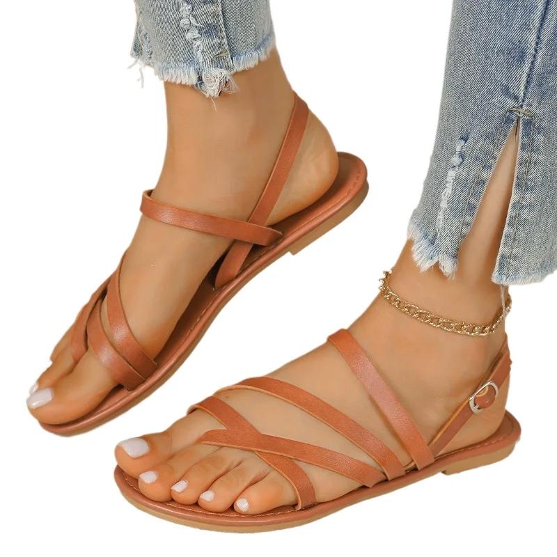 2026 Fashion Ladies Shoes Pinch Toe Women's Sandals New Narrow Band Summer Beach Buckle Strap Light Soft Bottom Flat Sandals