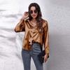 Elevate your wardrobe with this stylish satin women's shirt, perfect for adding a touch of sophistication to your ensemble. Crafted from high-quality polyester, this top features a smooth and elegant finish. The design boasts a solid pattern and long sleeves, making it a versatile choice for various occasions. Its turn-down collar adds a classic and refined touch, aligning with European and American fashion trends. Ideal for those who appreciate timeless elegance in their attire.