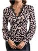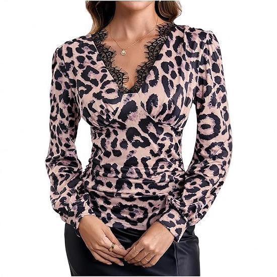 Women's 2025 Leopard Print V-neck Slim-fit Long-sleeved Lace Trim Top