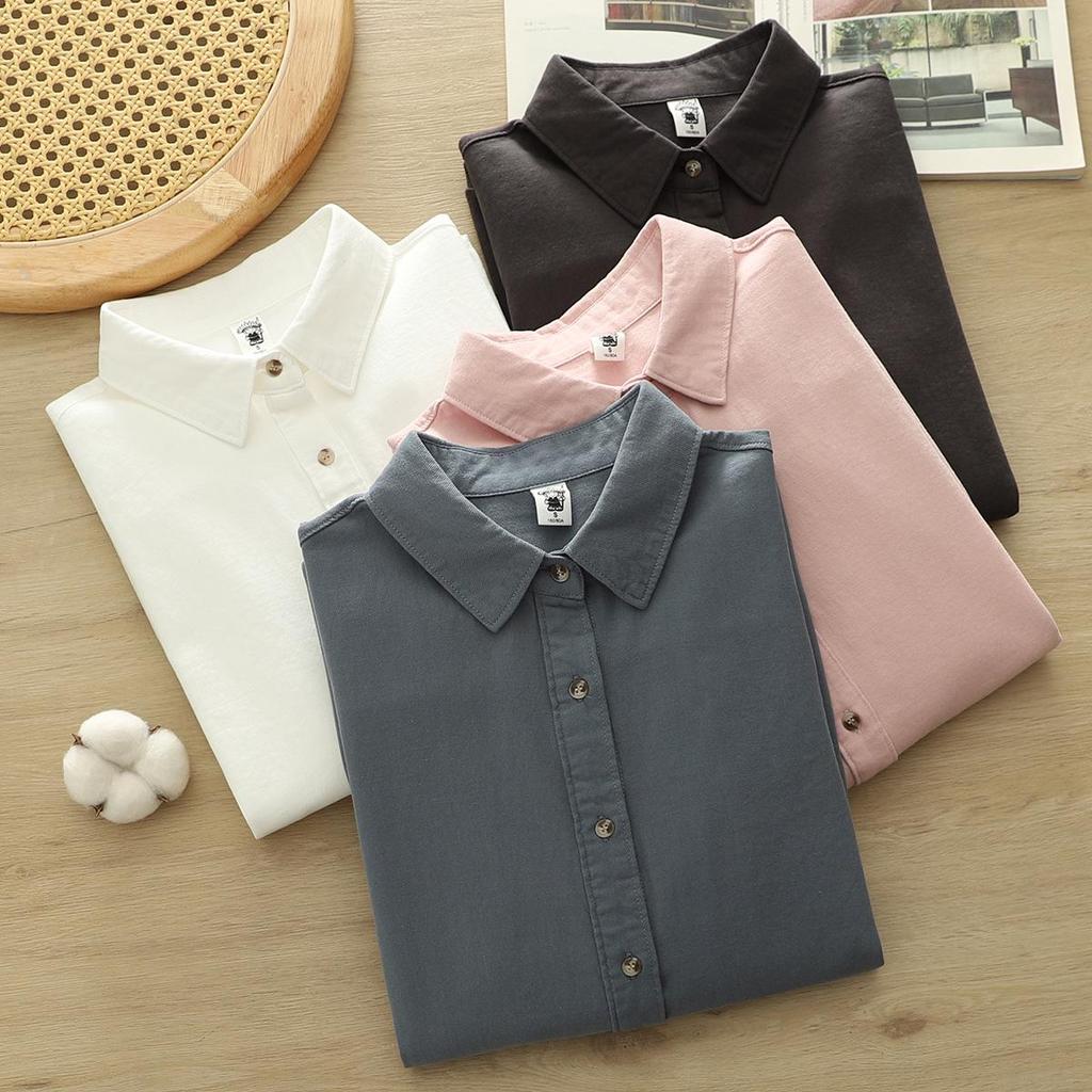 Japanese Style Long Sleeve Brushed Cotton Women's Shirt