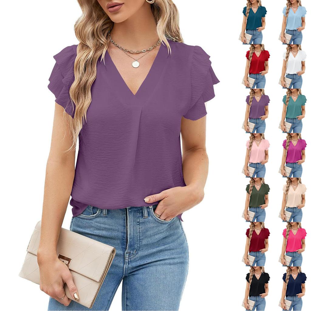Features: Material: The fabric is super soft and comfortable, very suitable for daily casual wear. The Tshirts is breathable and elastic, keeping you cool and comfortable in spring and summer. Matching: This top will become a versatile item in your closet, you can with sports some, sandals, high heels. You can also with baseball cap, sun hat, beach hat, etc. Occasion: Casual basic tees very suitable for daily dressed, casual, dating, work, beach, vacation, streetwear, running, workout, exercise or any occasions. Tops features a relaxed fit and design, making it easy to pair with jeans, shorts, leggings, joggers, sweatpants or skirts. It's perfect for spring, summer, autumnand fall. Product information: :/Spring/Winter/Summer Gender:Womens Occasion:Daily Fit:Fits ture to size Thickness:Standard How to wash:Hand or machine wash in cold water What you get:1XWomen Top