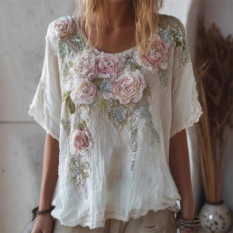 Discover the ultimate blend of style and comfort with this Women's 3D Print Drop Shoulder Jacquard Top. Crafted from a high-quality polyester material, this top is perfect for summer, offering a casual loose fit. The short sleeves and V-neckline enhance its airy and relaxed vibe, while the stunning 3D print adds a touch of modern elegance. Ideal for any casual outing, this top combines fashion-forward design with everyday ease.