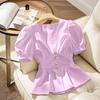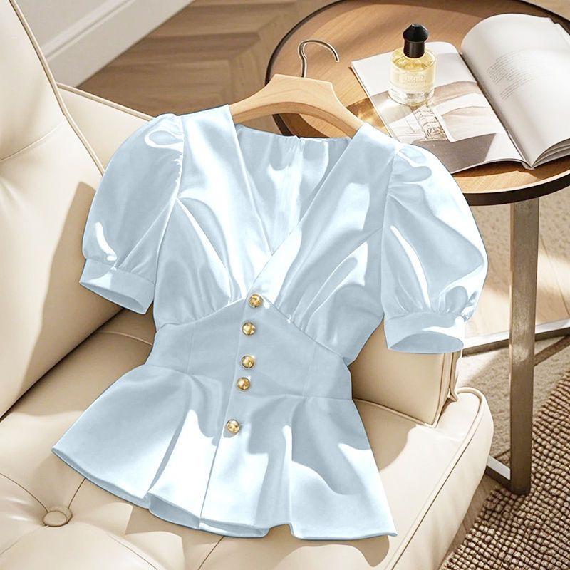 Chic Blue French Niche Short-Sleeve Blouse - Stylish Women's Outerwear for Summer 2026