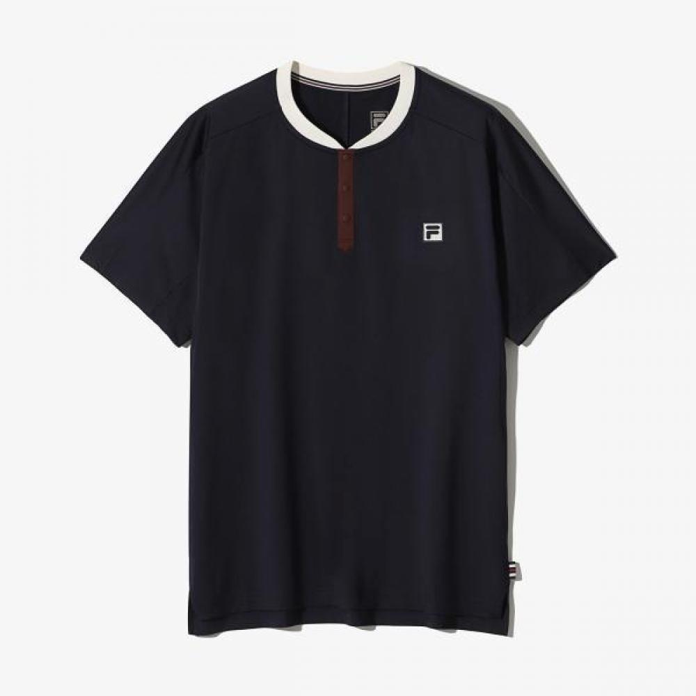The FILA Split Unipolyspan Henley Neck Half Zip Short Sleeve T-Shirt FS253RS11U002_452 is made of soft-touch polyspan material with moisture absorption and quick-dry functions. It quickly absorbs sweat and dries out, providing excellent breathability for a comfortable wearing experience during sports. The trophy pattern applied under the armpits and on the side supports optimal serves and take-backs, ensuring comfortable movement of the arms and shoulders even during extended play. With a standard fit that ensures stable wear, it is an essential basic item suitable for various sports activities. The half-zip Henley neck design belongs to the FILA Match series.