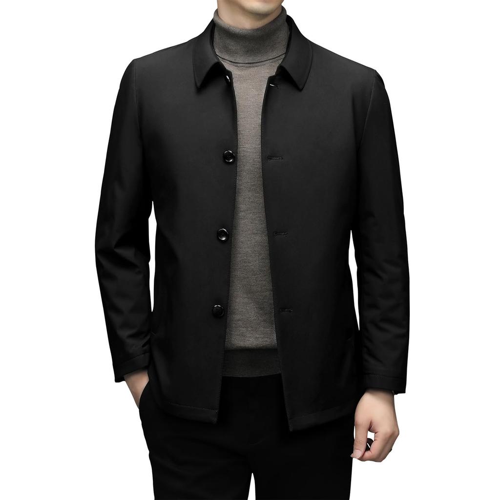 FJSSLHXK Collared Down Business Single Suitable for Senior Men's Jacket, Outerwear, Fold-Over Collar, Button, Men, Commuting, Autumn/Winter, Black,