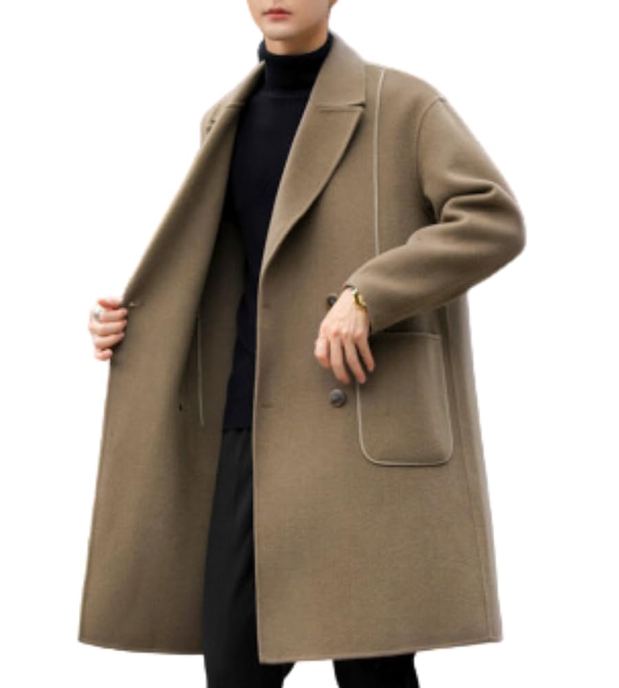Poperdision Long Business Wool Chesterfield Plus Loose Long Oversized Gray Men's Coat, Coat, Autumn/Winter Coat, Jacket, Coat, Sizes, Fit, Stylish,