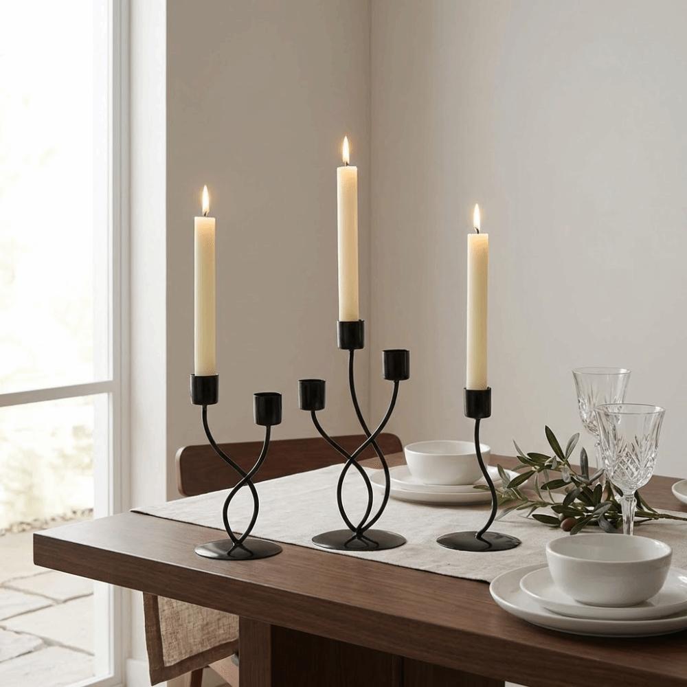 [Durable Material]: The candlestick holder is made of high quality iron material, combines aesthetics and practicality together, with exquisite workmanship, sturdy and durable to use.