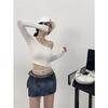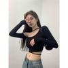 Niche Autumn Women's One-Shoulder Halter Crop Top - Long Sleeve, Slim Fit, Strappy Design