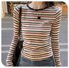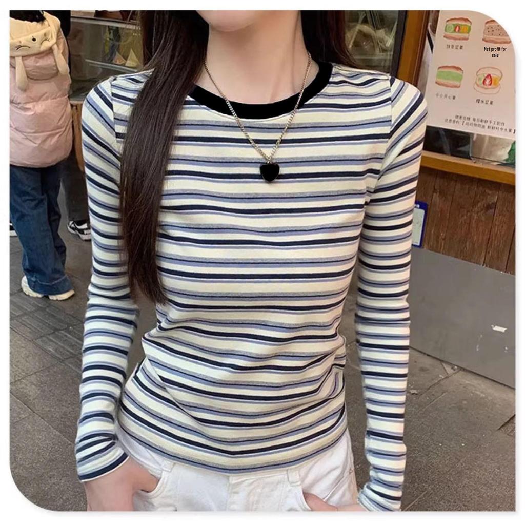 This women's long-sleeve T-shirt is designed for both autumn and winter, featuring a retro color block and striped pattern that adds a stylish touch to your wardrobe. Crafted from high-quality polyester, it offers a slim fit to accentuate your silhouette. The round neckline complements the overall design, making it a versatile piece that can be dressed up or down for various occasions. Ideal for layering or wearing on its own, this T-shirt combines comfort and style effortlessly.