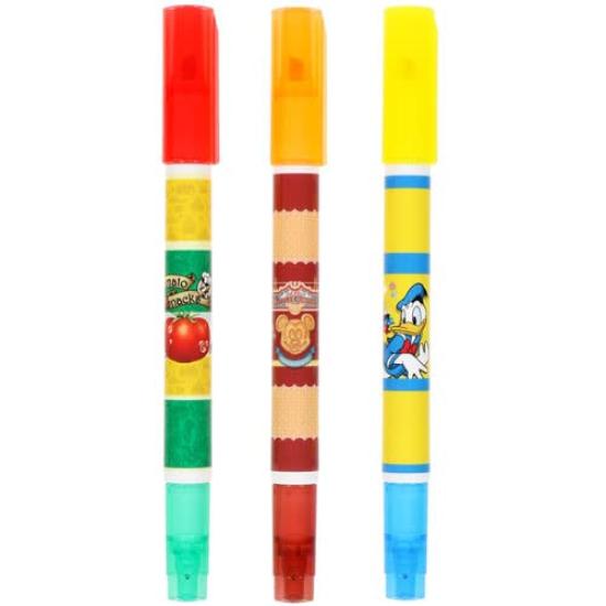 Tokyo Disney Resort Color Pen Set of 3 Twin Pens and with Scented Park Sweet Tokyo Disney Resort Exclusive Park Food and Tomato (Thick Thin) Designs,
