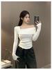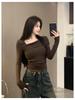 Pure Desire Asymmetrical One-Shoulder Top - Women's 2025 Winter Korean Style, Slim Fit Long Sleeve T-shirt