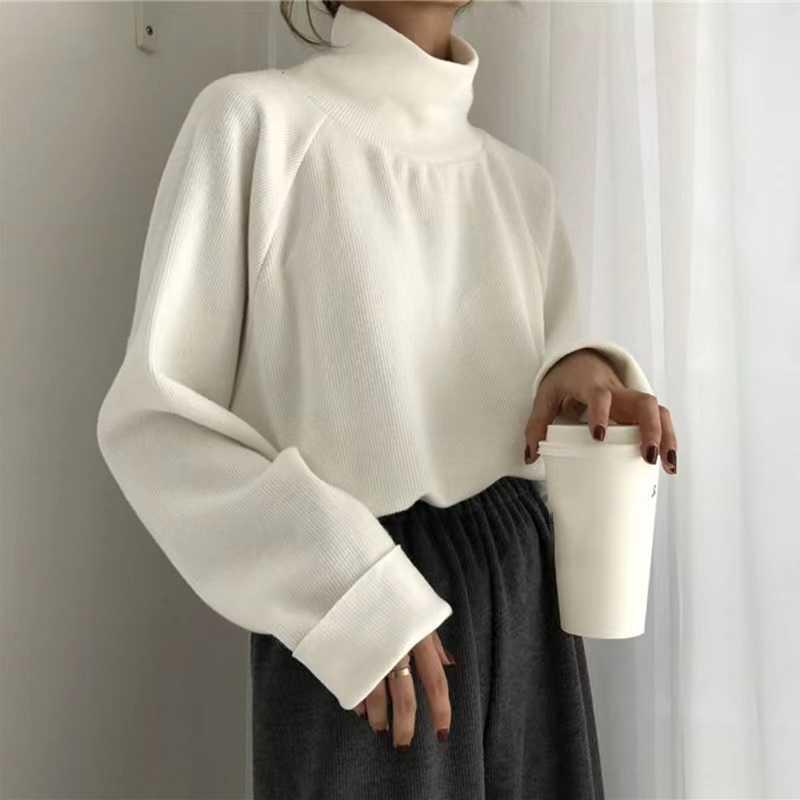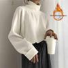Women's Half-High Neck Fleece T-Shirt - Brushed, Warm, Loose Fit for Autumn/Winter.