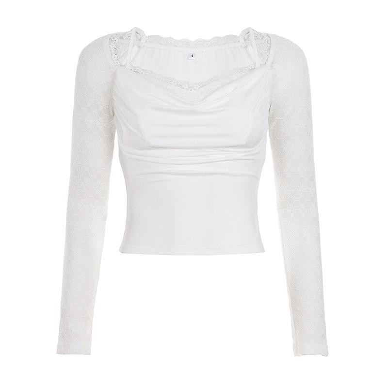 Trendy Spicy Girl Sheer Long-Sleeve Lace Patchwork T-Shirt
