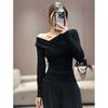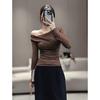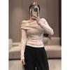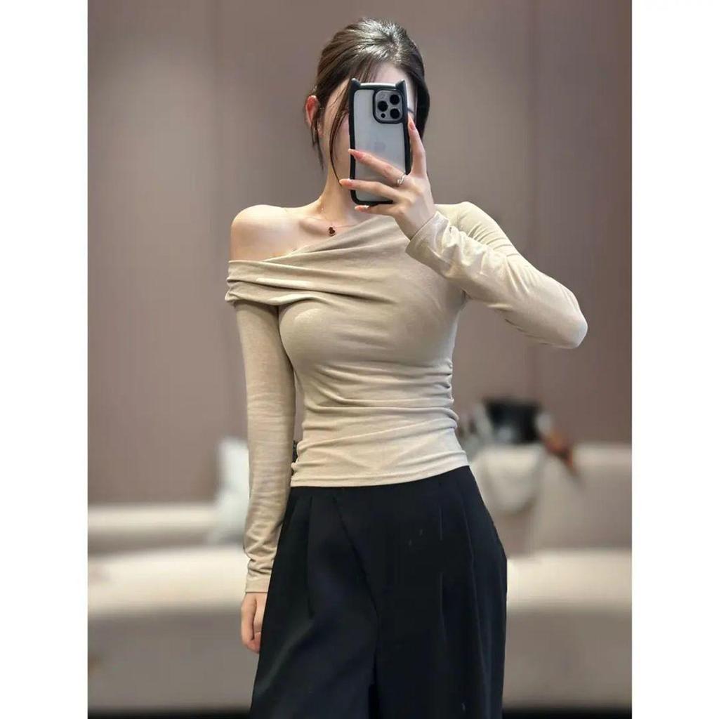 Asymmetrical Off-Shoulder Slim-Fit Long-Sleeve T-Shirt for Women - 2025 Autumn Elegant Pleated Design