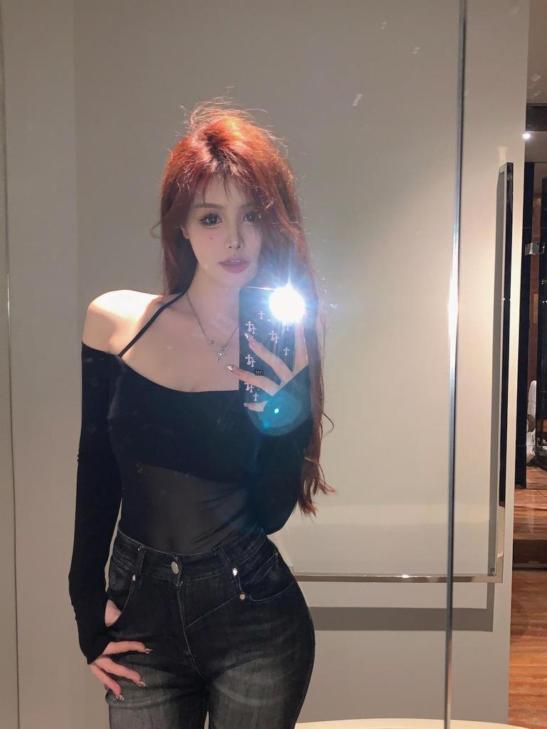 2025 New Black One-Shoulder Halter Top: Long Sleeve, Autumn Women's Sweet & Spicy High-End Collarbone T-shirt