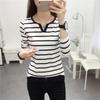 2025 Spring/Autumn Women's Slimming Striped V-Neck Long-Sleeve T-Shirt - Student Base Layer