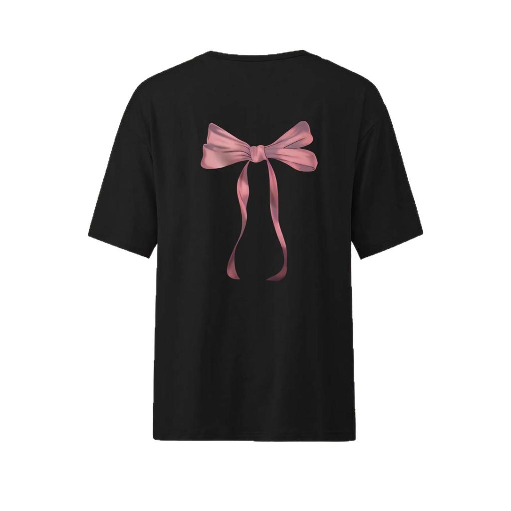 Elevate your wardrobe with this delightful short sleeve t-shirt, featuring a charming pink bow print. Crafted from comfortable polyester, this loose-fitting tee is perfect for keeping cool during the spring and summer months. The classic round neckline adds a touch of simplicity, while the bowknot decoration provides a playful, feminine touch. Ideal for casual outings or leisure activities, this versatile piece effortlessly blends style and comfort.