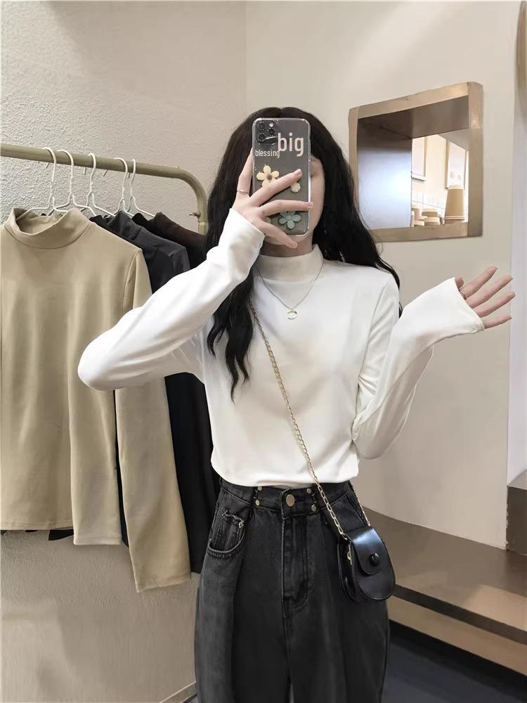 Stay cozy and stylish during the cooler months with this fashionable women's long sleeve T-shirt. Crafted from high-quality polyester, it features a solid pattern that complements any wardrobe. The half-high collar adds a touch of elegance, while the thickened shoulder design ensures extra warmth and comfort. This slim fit top is perfect for autumn and winter, making it an essential addition to your seasonal wardrobe.
