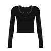 This elegant bodycon top is crafted from a smooth polyester-spandex blend, offering a comfortable and flattering fit. Its long sleeves and distinctive square neckline are beautifully complemented by delicate lace patchwork, adding a touch of sophistication. Ideal for both casual and formal settings, this top seamlessly combines style and comfort for a captivating look.