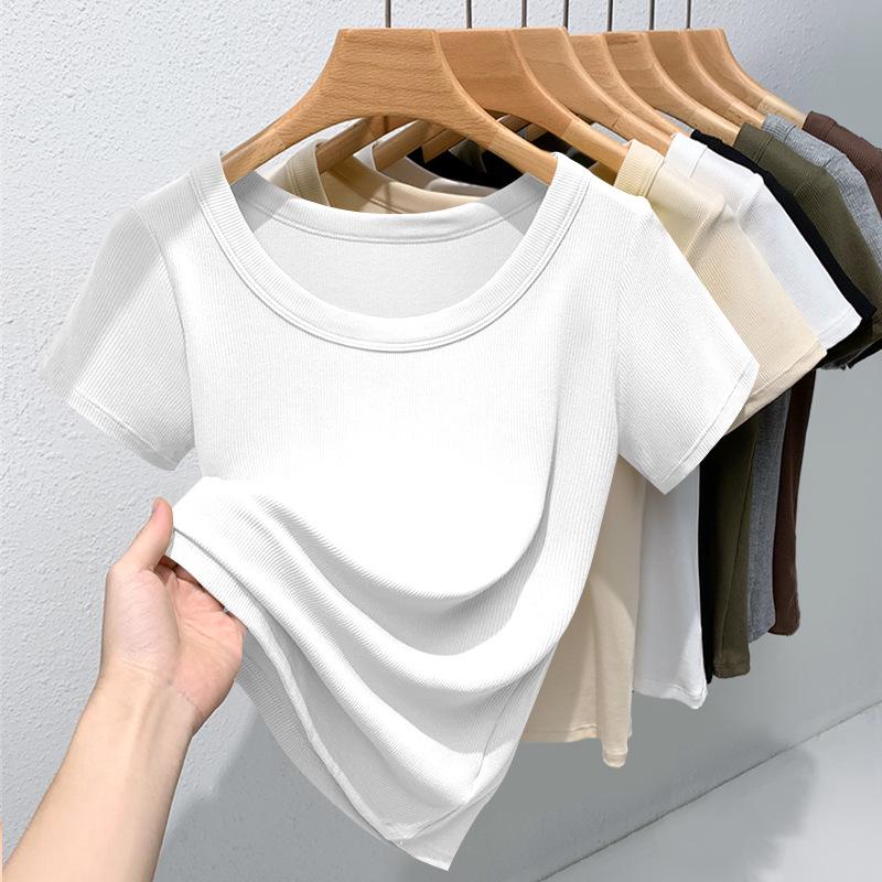 Elevate your summer wardrobe with this high-quality ribbed T-shirt. Crafted from durable polyester, this top offers both comfort and flexibility. Featuring a classic round neckline and slimming short sleeves, it effortlessly complements any outfit. The solid color design makes it a versatile addition to your closet, perfect for casual outings or layering under your favorite jacket. Experience the perfect blend of style and functionality with this stretchy, must-have summer staple.