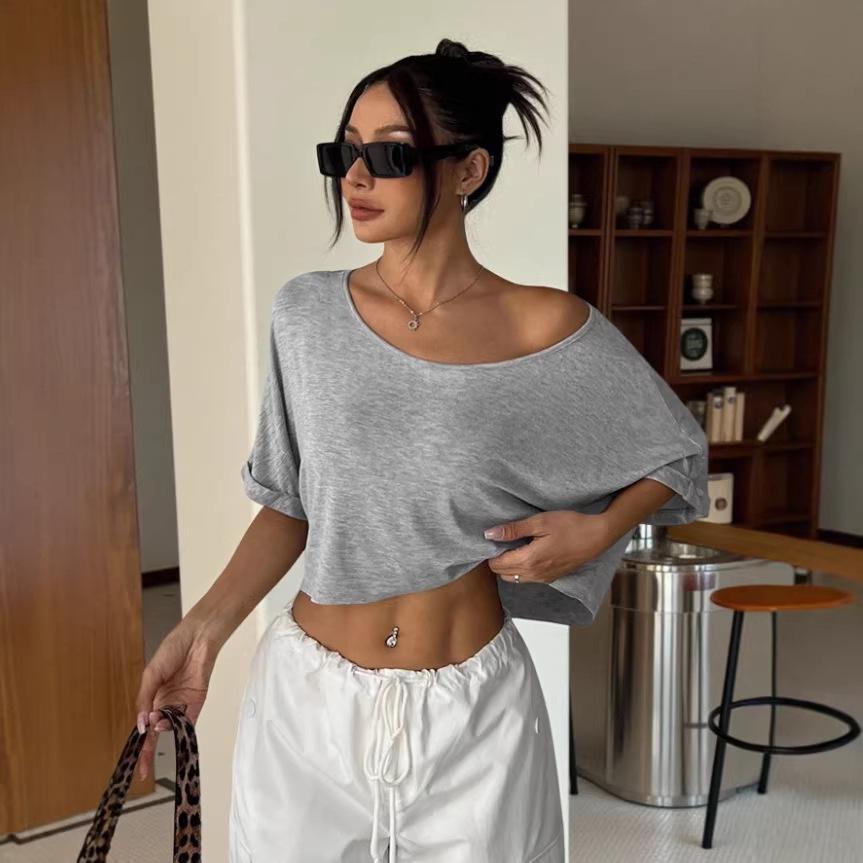In-Stock Women's Off-the-Shoulder Cropped Sexy Short T-shirt Top