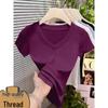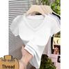 Elevate your spring and summer wardrobe with this stylish plus-size V-neck T-shirt. Crafted from high-quality polyester fabric, this ribbed shirt offers both comfort and a flattering fit. Its short sleeves provide a breezy feel, making it perfect for the warmer months. With a solid color design, it serves as a versatile base layer, ideal for creating chic Korean-inspired outfits. This bestselling piece combines simplicity and elegance, ensuring it becomes a staple in your seasonal collection.