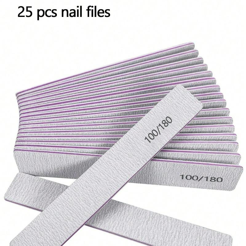 25Pcs Professional Nail File,180/100 Nail File Double-Sided Fine Grain Nail File For Home And Salon Use