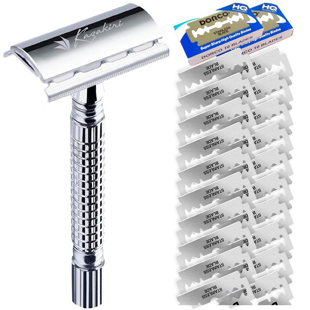 Kazakiri W Razor for a Deep Includes 20 Replacement Facial Razor for Men Double-Edged Shave, Blades, Razor,