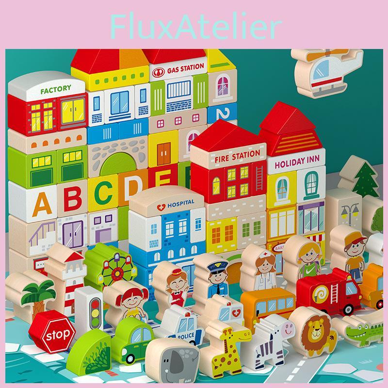 This wooden city sunshine building set features , it supports hands-on construction and develops hand-eye coordination. Ideal for early childhood education and parent-child interaction, it requires no batteries and is easy to clean with a damp cloth.