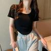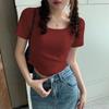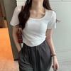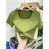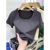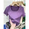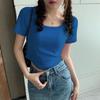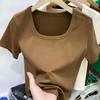 Elevate your summer wardrobe with this figure-flattering, slim-fit tee featuring a contemporary square neckline. Crafted from lightweight polyester, this short-sleeve top offers a pure, streamlined style perfect for warm-weather trends. Its plain color design makes it a versatile addition to any casual or chic attire. Ideal for those seeking comfort and elegance, this tee combines simplicity with sophistication for a timeless look.