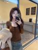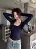 Women's Strappy U-Neck Long Sleeve Knit T-shirt - Slim Fit, Elastic Base Layer for Autumn/Winter 2025