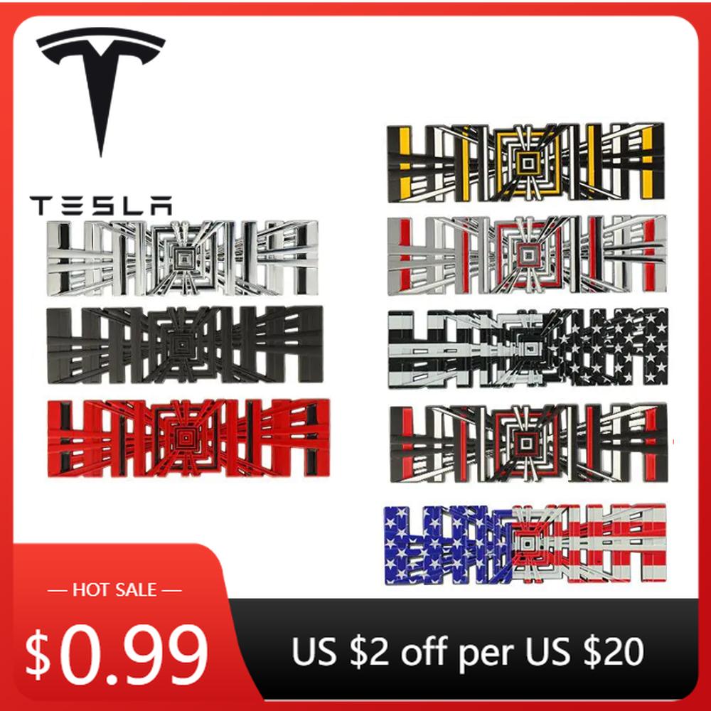 Car Sticker Tesla 3D Metal Alloy Plaid Logo Rear Trunk Fender Badge Emblem Sticker Decals For Tesla Model Y S 3 X Roadster 2022