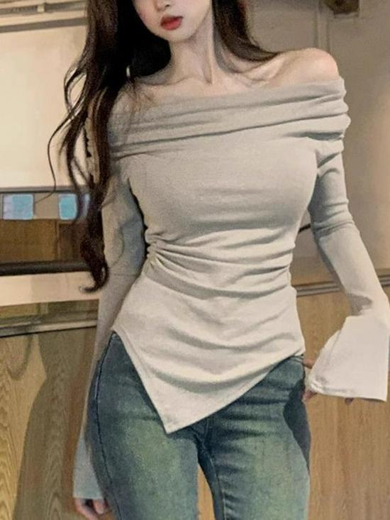 Elevate your autumn wardrobe with this chic and sophisticated one-shoulder top. Crafted from soft and stretchy modal material, it offers a comfortable yet form-fitting silhouette. The sleek, long sleeves and solid pattern make this top a versatile choice for both casual outings and evening events. Its unique one-shoulder design adds a touch of elegance and allure, perfect for making a stylish statement in the cooler months.