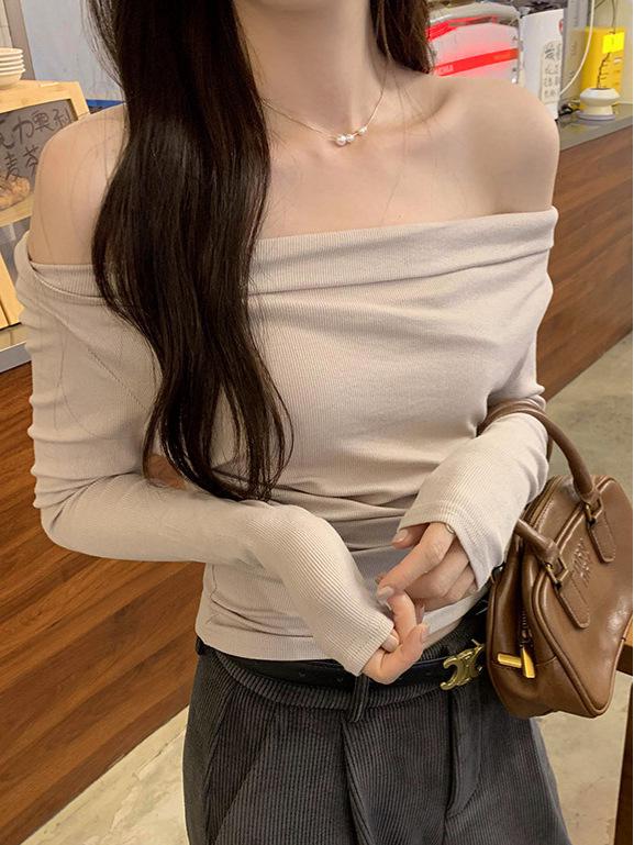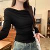 Chic One-Shoulder Slim Long-Sleeve T-Shirt for Women - Perfect for Spring and Autumn