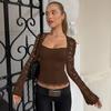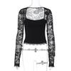 2025 Summer Women's Fashion Lace Patchwork Long Sleeve Top