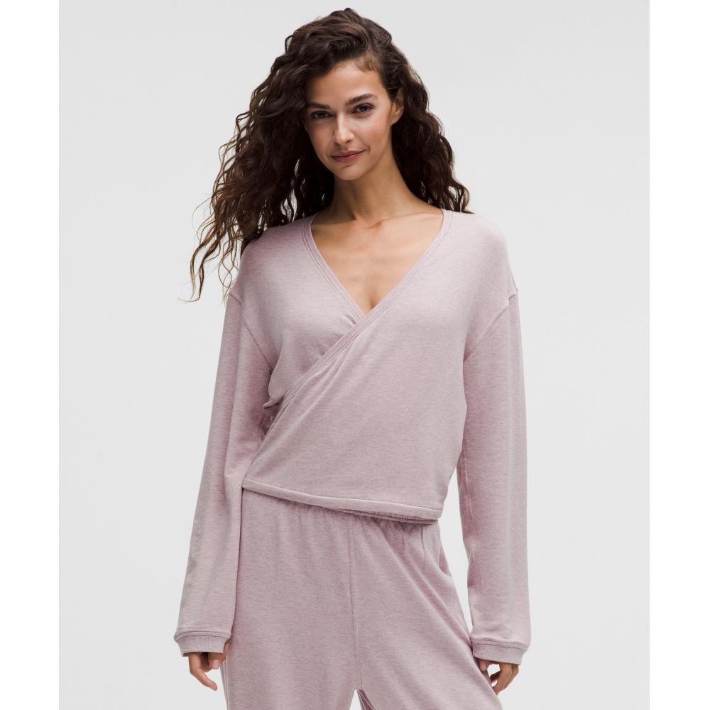 Let the stress of the day melt away. Cozy and luxuriously soft, this wrap-front long sleeve is an everyday retreat.