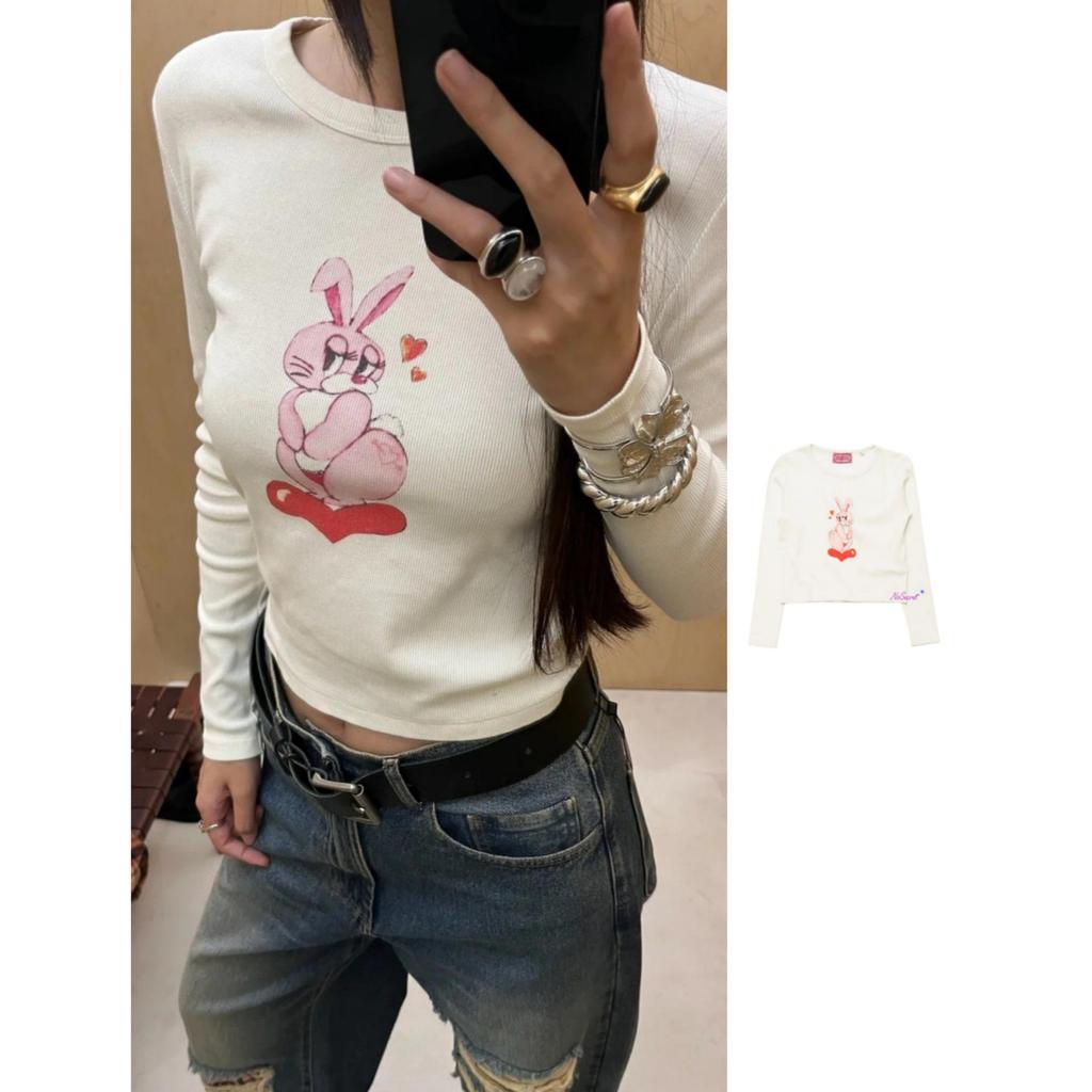 Spicy Girl Style 25SS Autumn/Winter High-Waisted Long-Sleeve Heart Rabbit T-Shirt