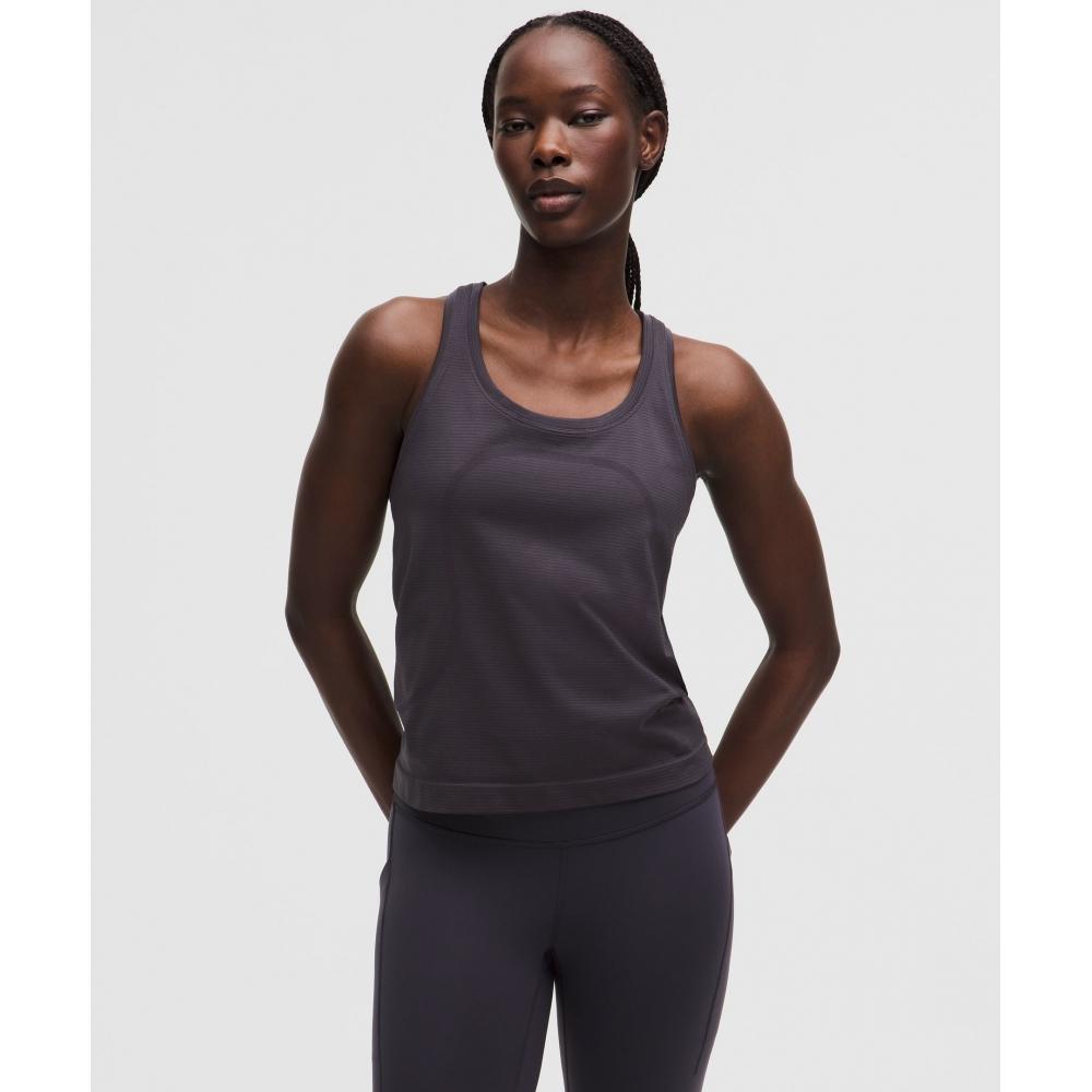 Lululemon Swiftly Tech Racerback Tank Top 2.0 Waist Length Spandex Stripe Atmospheric Purple Coal