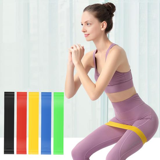 Featuring five color-coded resistance levels—from X-Light to X-Heavy—each band is clearly marked with an English logo and dot system for easy identification, catering to all fitness levels.