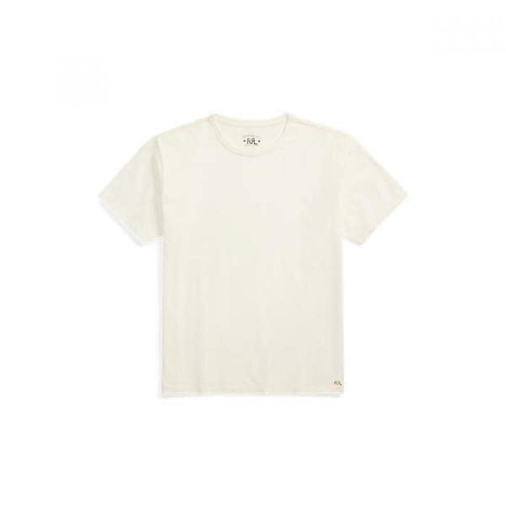 The RRL Relaxed Fit Heavyweight Jersey T-shirt is crafted from heavy-weight 100% cotton jersey. It features a bias rib crew neck and has the Double RL Ranch logo embroidered on the hem with chain stitching. This garment boasts the most relaxed silhouette and a boxy fit with long sleeves. The front body length of size M is 71.1cm, with a shoulder width of 48.9cm and chest measurement of 108.6cm. It is machine washable, and purchasing cotton products supports the Better Cotton™ initiative. However, please be cautious as dye may bleed onto fabrics.