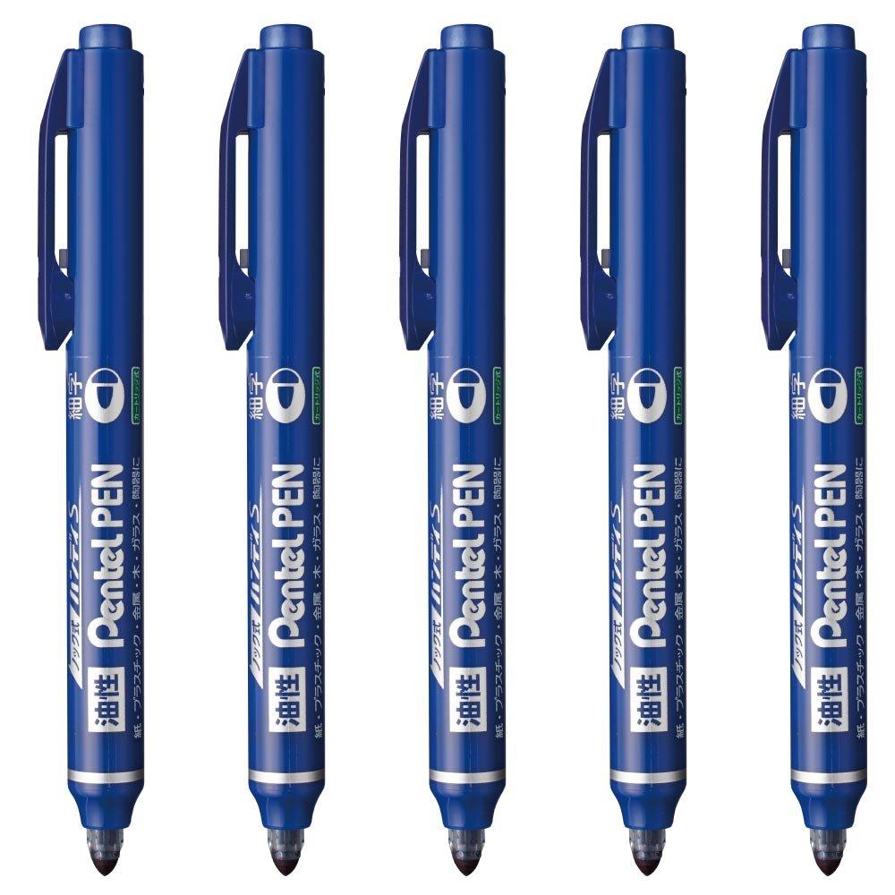 Pentel Handy PentelPEN Fine 5 Pens Oil-Based Pen, Knock-Style S, XNXS15-CP, Point, Blue,