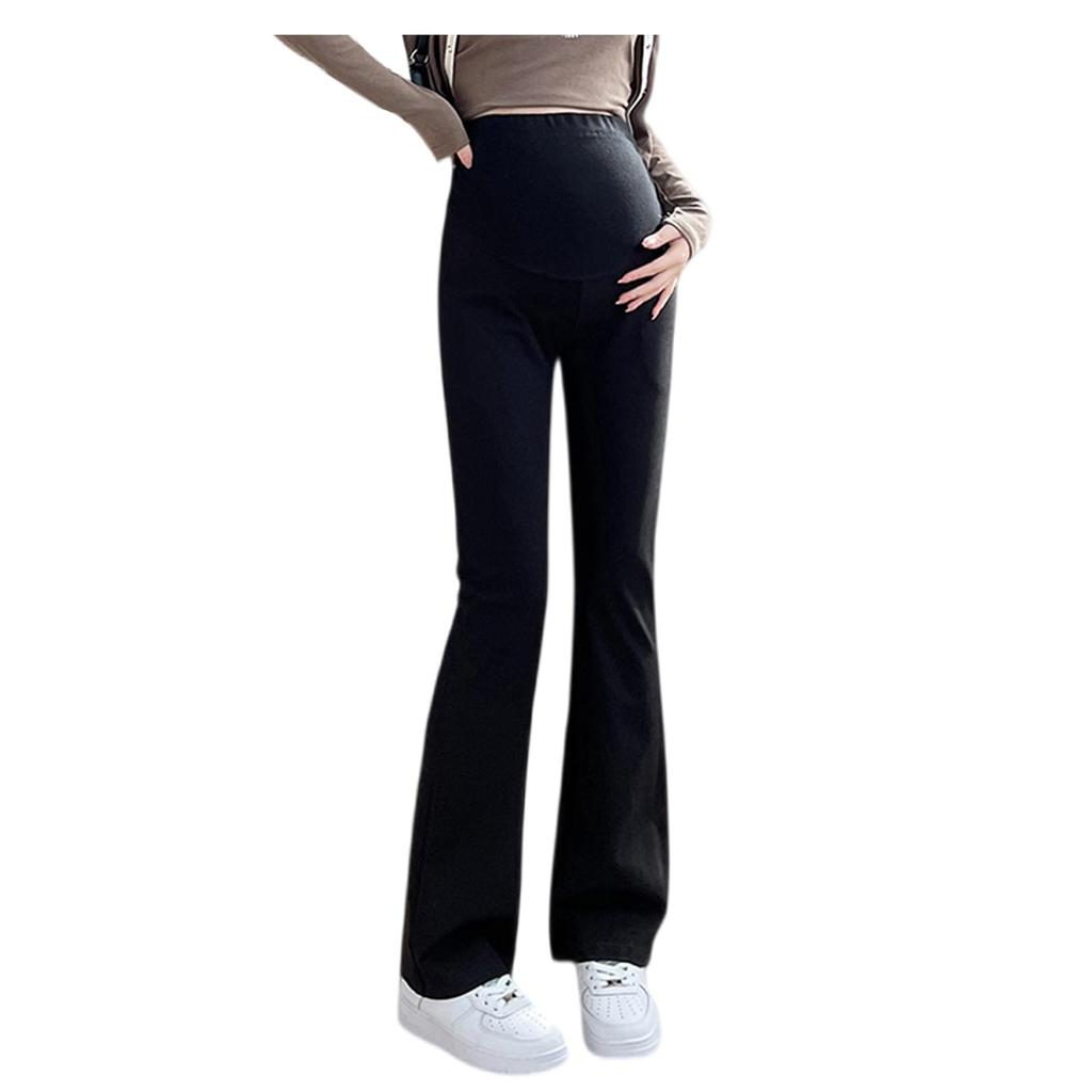 Onabebi Maternity Flared Pants with Bootcut Pregnancy Adjustable Beautiful Effect Black Pants, Slits, Trousers, Waist, Pockets, Line, Casual,